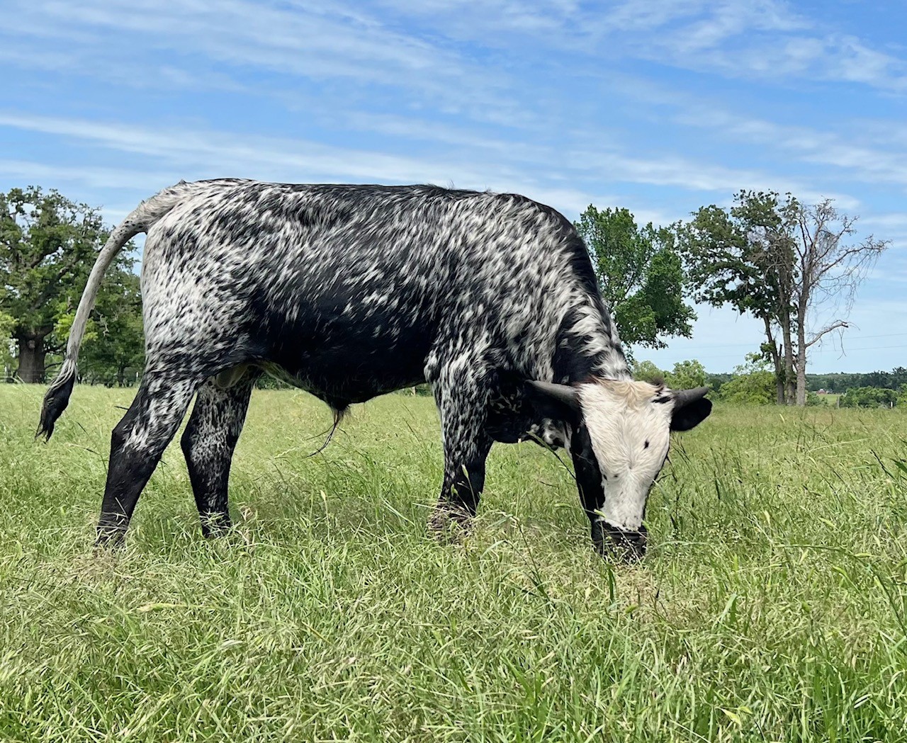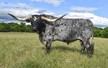 Wow just wow what a stunning black and white bull by one of the breed’s amazing 2000+ lb elite bulls and out of a 50/50 daughter with highly desired flat twist horns! He will have size, twist horns on both sides of pedigree, all the color you can dream of and so much more!